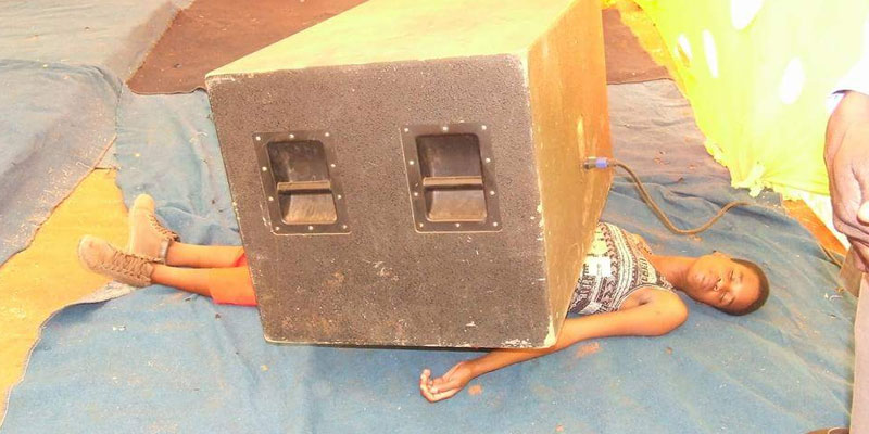 La jeune fille avait d’abord refusé, mais le pasteur a insisté. Il lui a expliqué que le poids du baffle sera très léger et qu’elle ne sentira aucune douleur.