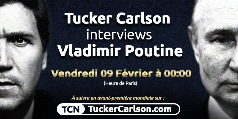 C'est un séïsme planétaire qui est en train de se dérouler sous nos yeux... Plus de 16 millions de visionnages enregistrés en seulement 16H sur la page Twitter principale de l'ex-Journaliste vedette de Fox News, Tucker Carlson. Quand on prend en compte qu'en seulement 3 jours, la vidéo de l'annonce de cette interview a dépassé les 109 millions de vues, l'on comprend alors pourquoi les médias menteurs étaient en état de fébrilité depuis ce mardi 06 février. Nous avons le plaisir de vous transmettre en intégralité, la version française de cette interview qui va faire couler beaucoup d'encre sinon de salive, ainsi que sa transcription complète (en français), suivie de notre émission spéciale consacrée à cet événement de portée mondiale.