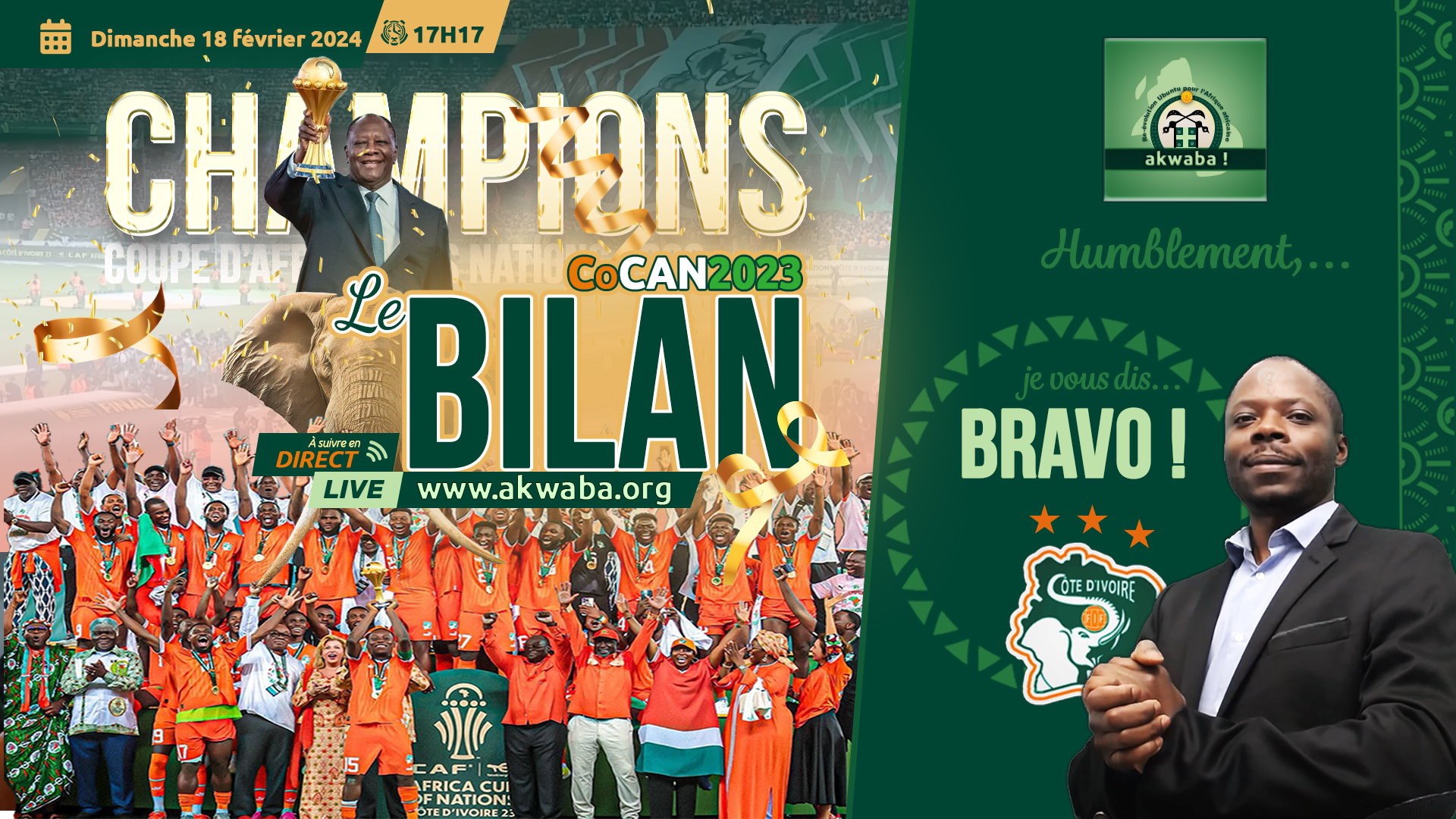 Ce live sera diffusé sur le site www.akwaba.org. Je vous donne RDV ce dimanche 18 février 2024 à 17H17.